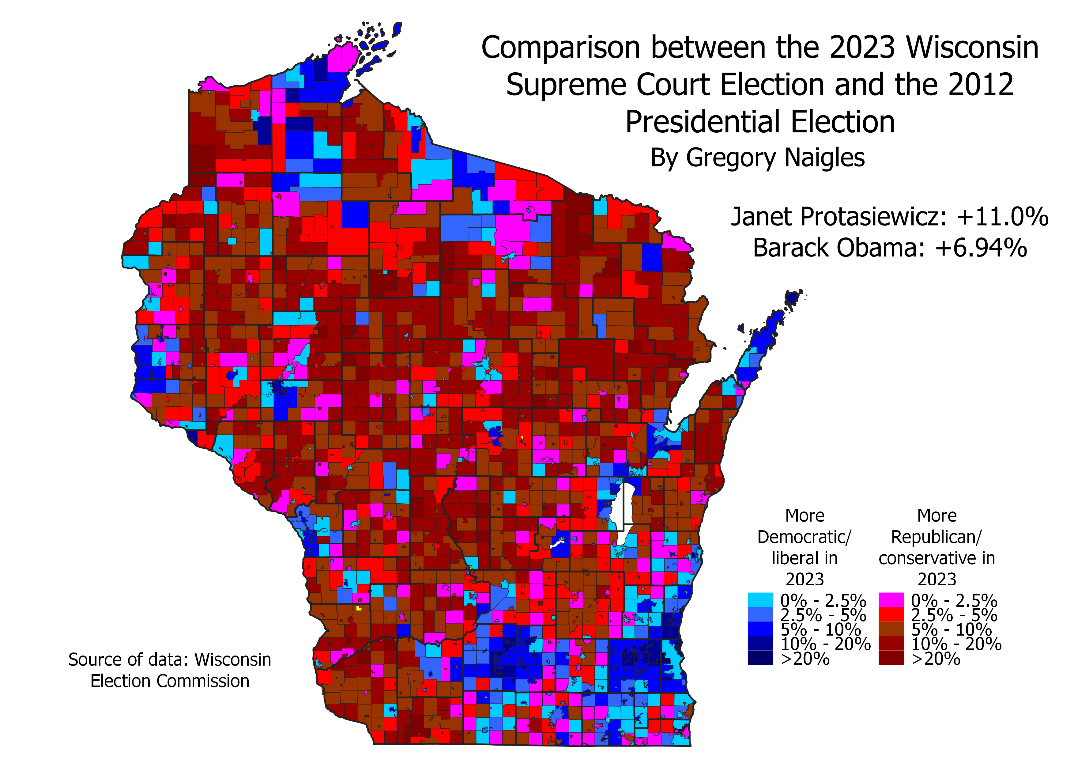 I hope these maps helped give you a better understanding of the 2023 Wisconsin Supreme Court election results, and the vote shifts and patterns behind them. As always, please leave a comment and let me know what you think!