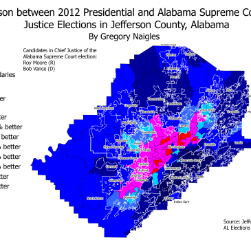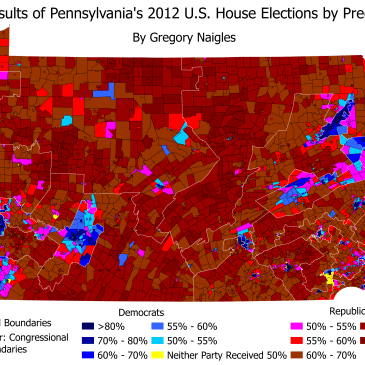 There are some states for which mapping their election results by county just doesn’t cut it, due to the fact that their election results vary widely inside the county. To tell the whole story, you’ve got to look at the municipality-level results, or even the precinct-level results. Pennsylvania is one of those states. The political … More Some really cool maps of the 2012 Congressional and State Legislative Elections in Pennsylvania