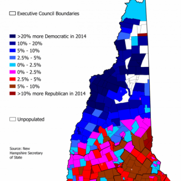 The 24-member New Hampshire State Senate and 5-member Executive Council are both up for re-election every two years. Despite the fact that the districts for both were drawn by Republicans, both were hotly contested in 2014.  Coming into 2014, the Republicans controlled the State Senate by a slim 13-11 margin, while the Democrats had a … More Analysis and Maps of 2014 State Senate and Executive Council elections in New Hampshire, and Comparisons to 2012 Elections